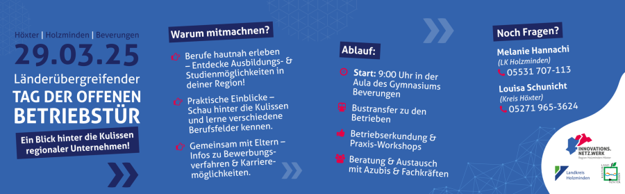 In Höxter, Holzminden und Beverungen öffnen Unternehmen ihre Türen für einen exklusiven Blick hinter die Kulissen!